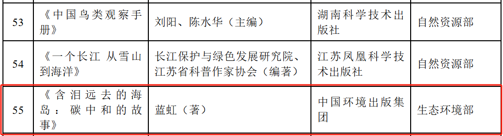 喜報!——我集團出版的《含淚遠去的海島:碳中和的故事》入選2024年全國優秀科普圖書作品公示名單