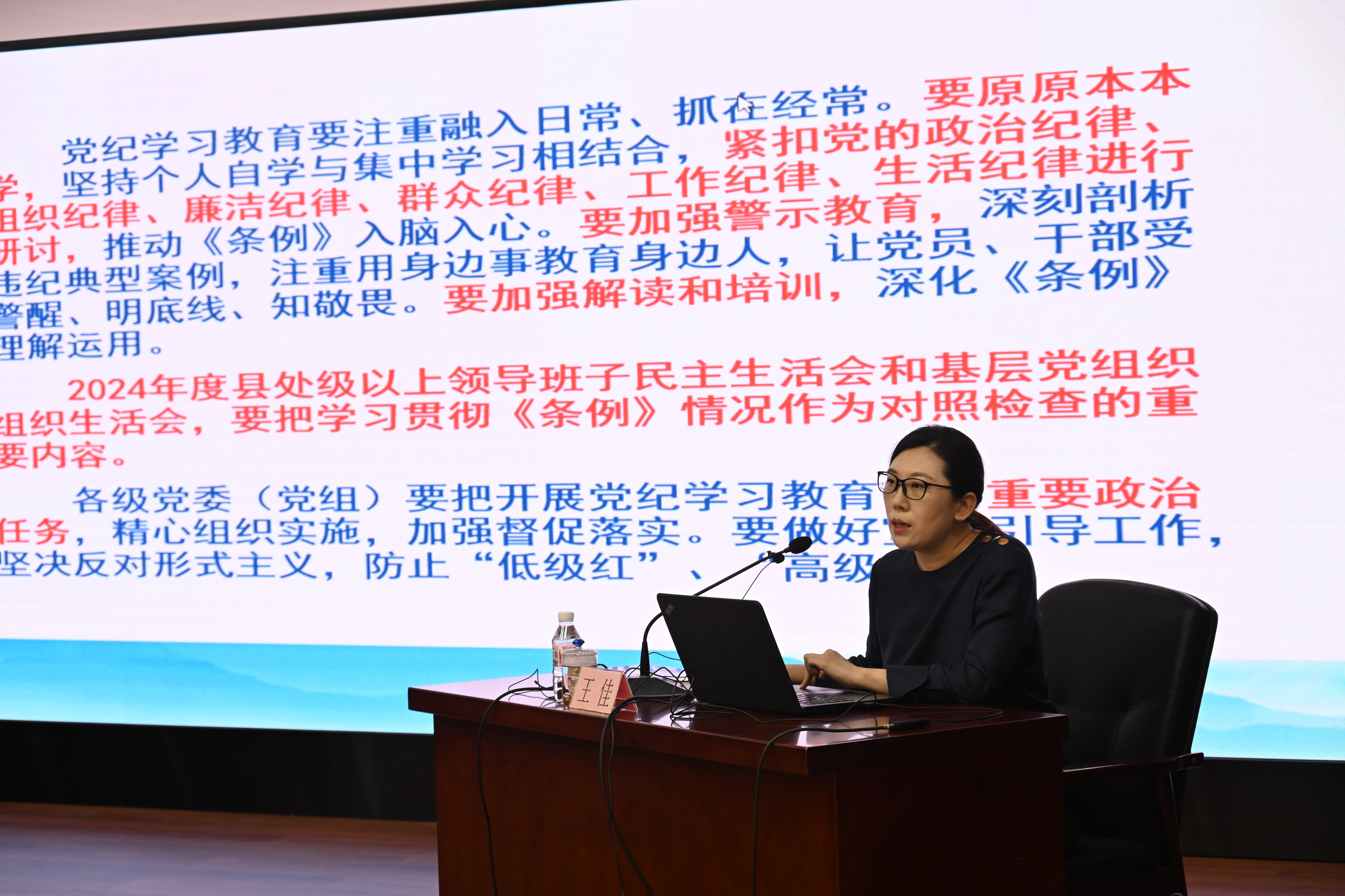 王佳教授從中央部署、修訂概況、條文解讀等方面對《條例》作了深入解讀,結(jié)合具體條款、基本內(nèi)涵、適用范圍和案例剖析,對違反政治紀(jì)律、組織紀(jì)律、廉潔紀(jì)律、群眾紀(jì)律、工作紀(jì)律、生活紀(jì)律的行為及處分作了系統(tǒng)講解,讓全體黨員干部對《條例》理解得更深入、更透徹。