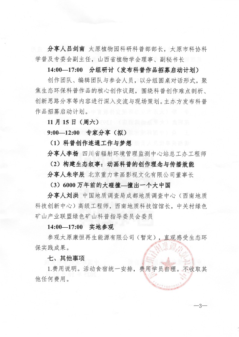 創作營僅需參營人員自理食宿,不收取其他任何費用,大幅降低參與成本,讓更多關注生態環保科普的人員能輕松加入,無需承擔額外經濟壓力。
